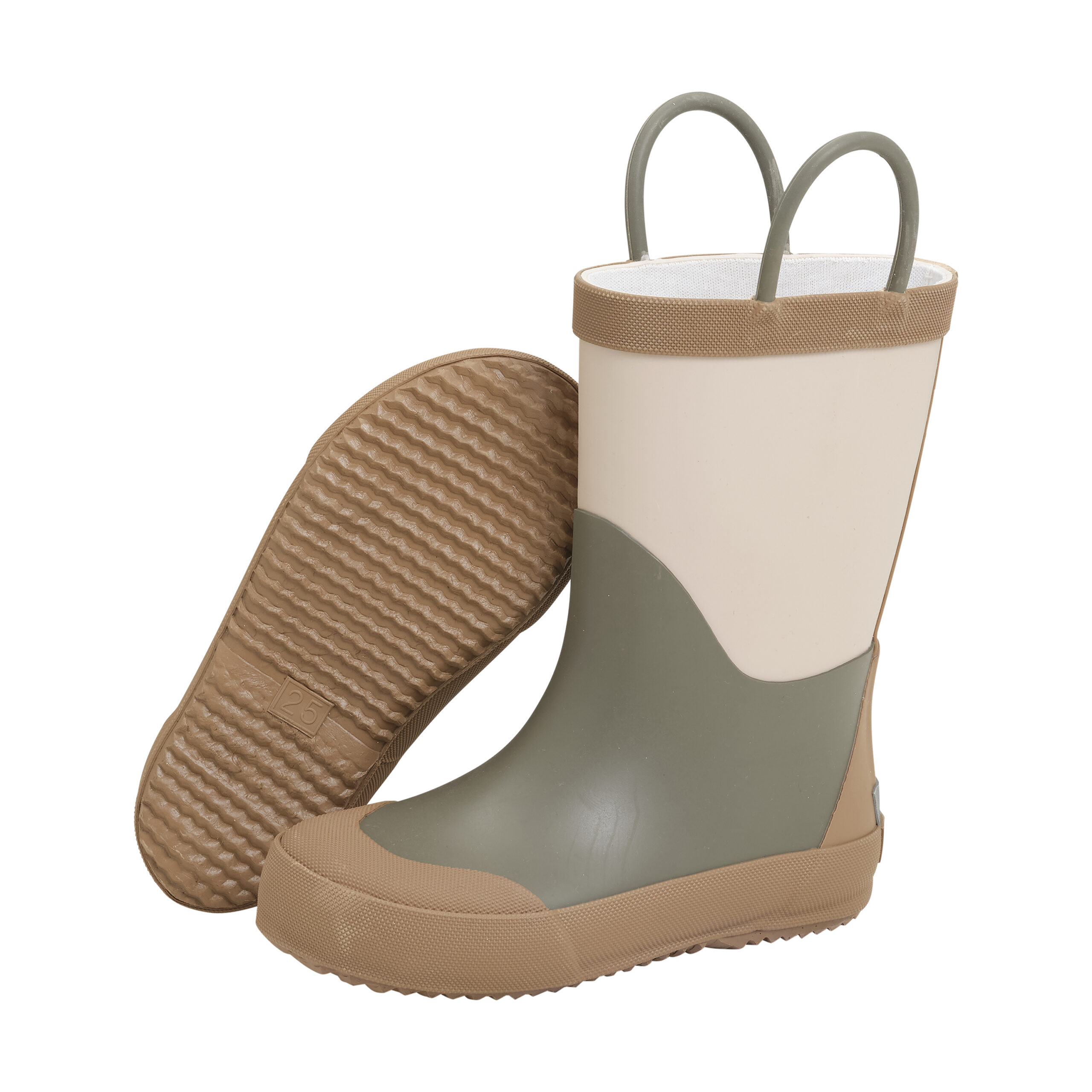 Laste rohekaspruunid kummikud. Kvaliteetsed CeLaVi kummikud. Kummikud on käsitsi valmistatud naturaalsest kummist ja neil on tagaküljel helkurriba.
