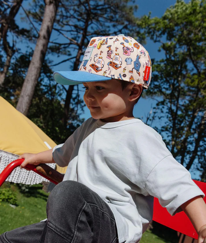 Laste reguleeritav mustriga nokamüts. Keskkonnasõbralik. Kumer nokamüts. Reguleeritav rihm taga. Oeko-Tex sertifitseeritud. Ideaalne suveks. Suurepärane kingiidee lastele. Päikesepaistelisteks päevadeks hädavajalik.