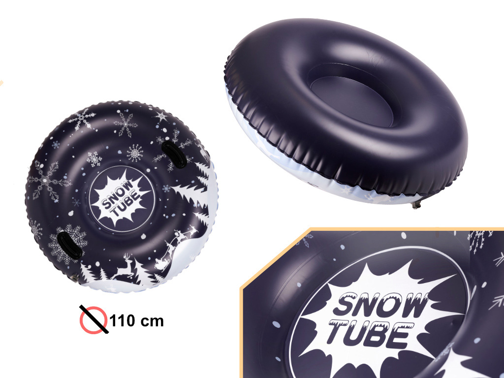 Atraktiivse graafikaga kaunistatud täispuhutav kelk pakub palju rõõmu nii lastele kui ka täiskasvanutele . Need sobivad ideaalselt kelgutamiseks ja lumel libisemiseks – tugevast plastist rehv on kasulik nii tagahoovis , aias kui ka liikvel olles .