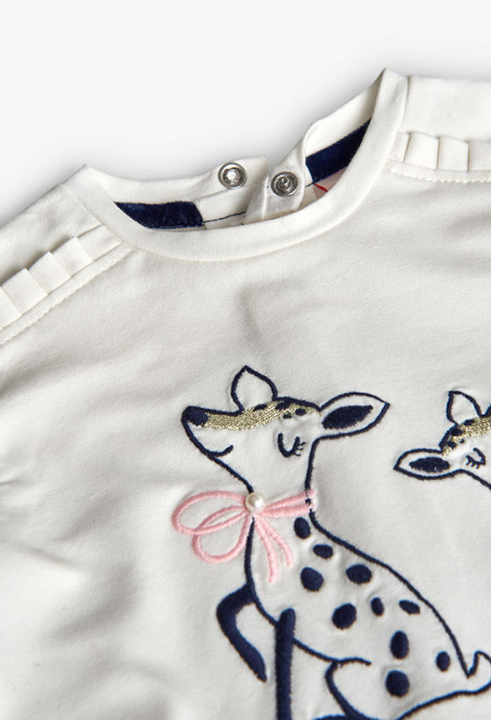 Tüdrukute pikkade käistega pluus pildi ja detailidega.