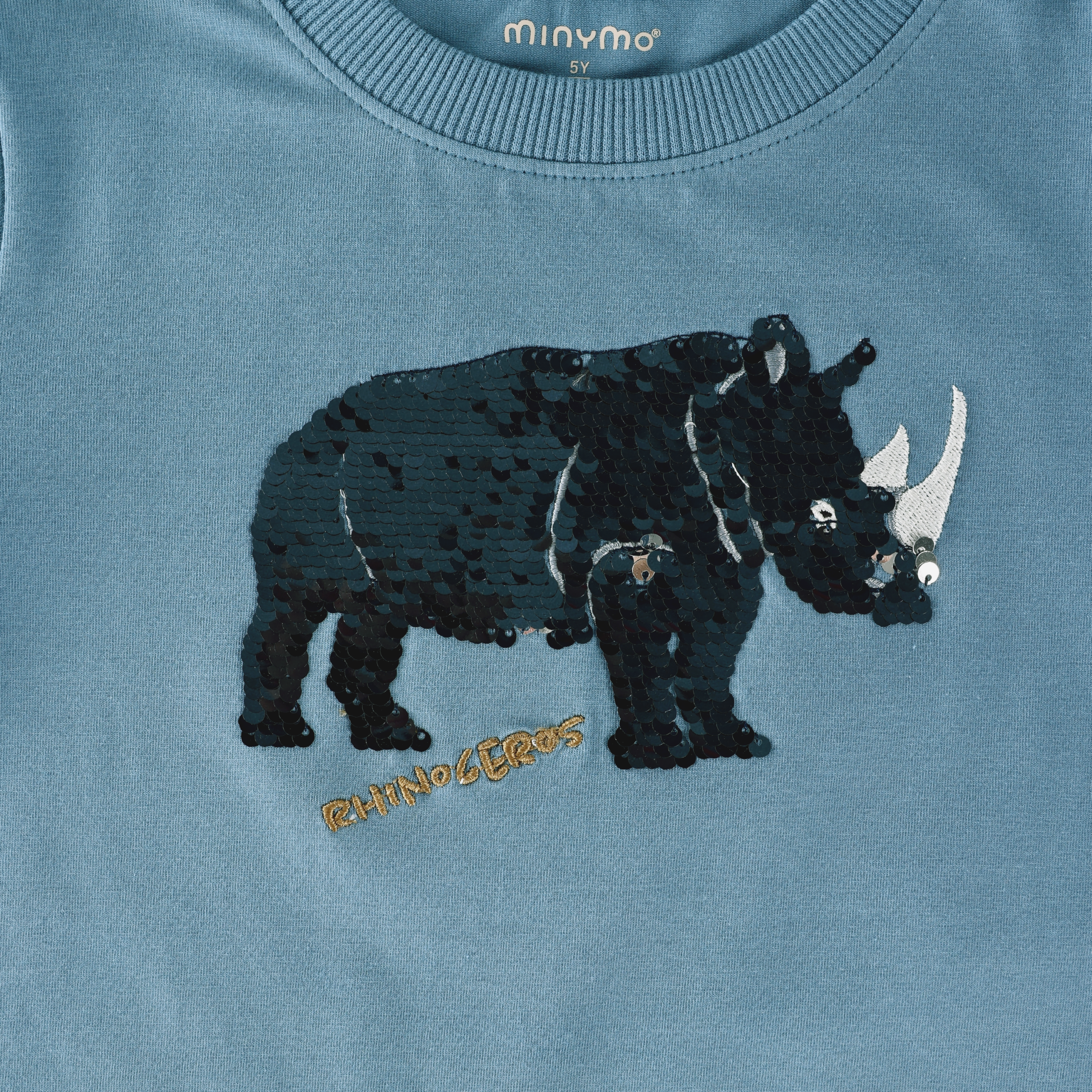Poiste sinine kahte värvi litriteg ninasarvikuga t-särk.