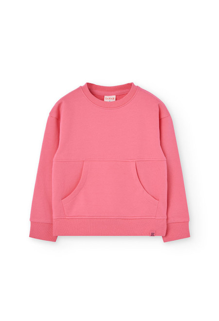 Tüdrukute roosa dressipluus esitaskuga.