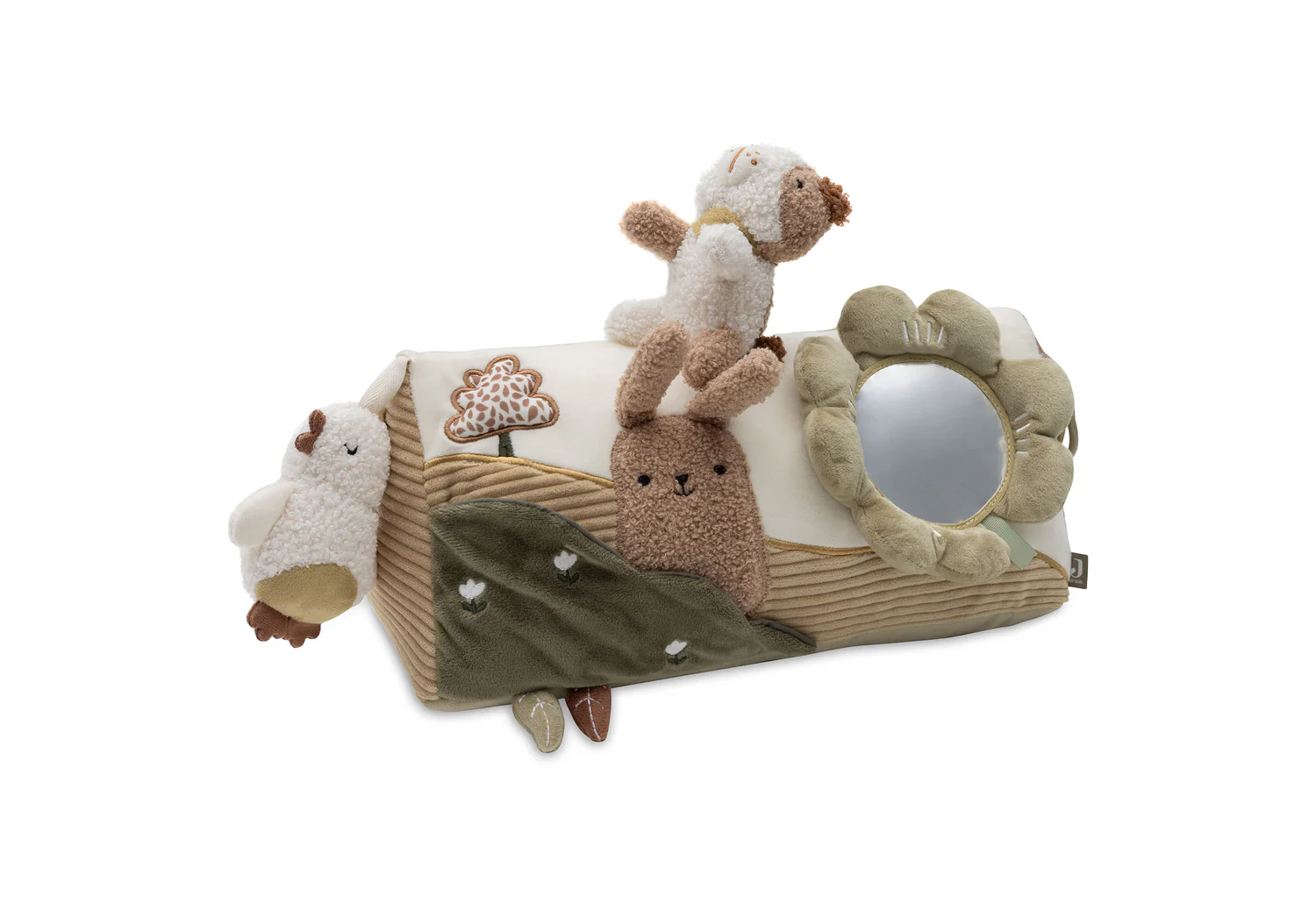 See armas aktiivsuskolmnurk Tiny Park kollektsioonist on teie lapse mänguaeda hädavajalik lisa. Padi on kaunistatud rõõmsameelse kutsika ja jänku tikandiga, mis lisab mängulist hõngu. Kolmnurgal on erinevad lisad, sealhulgas peegel, mis sobib ideaalselt kõhuli aja veetmiseks. Pehmete materjalide ja lõbusate detailidega pakub see aktiivsuskolmnurk tundideks mänguaega, toetades samal ajal teie pisikese arengut. Täiuslik täiendus Tiny Park kollektsioonile!