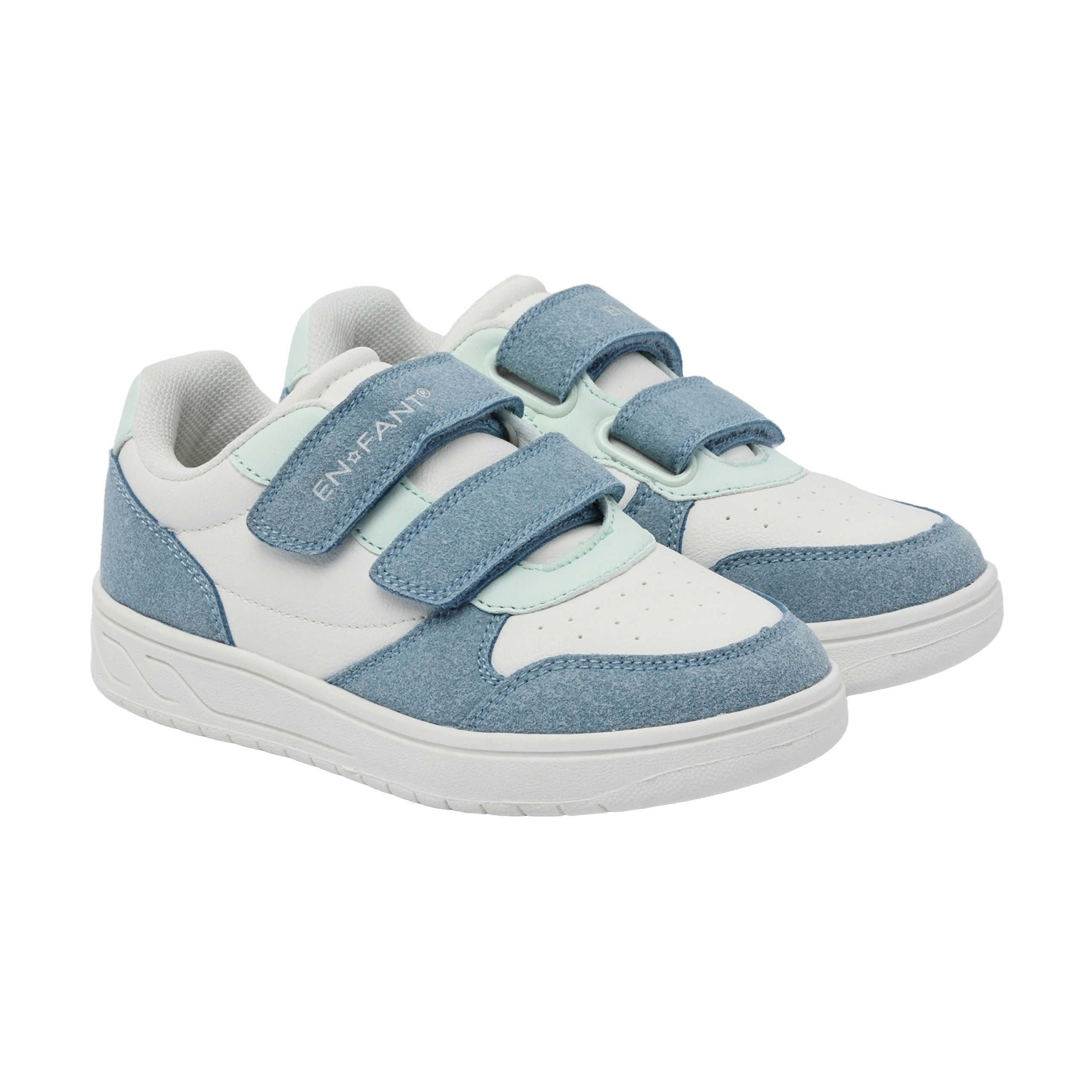 Lahedad valge ja sinisega tossud. Jalanõud sulguvad kahe takjakinnitusega. Soovitatav on 1 cm kasvuvaru.