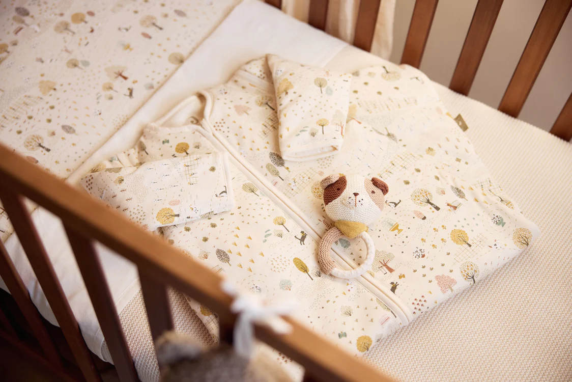 Eemaldatavate käistega mahamiskott beebile. Armas muster ja mugav puuvill. Aitab beebil tunda ennast magamise ajal turvaliselt. Hea alternatiiv tekile.