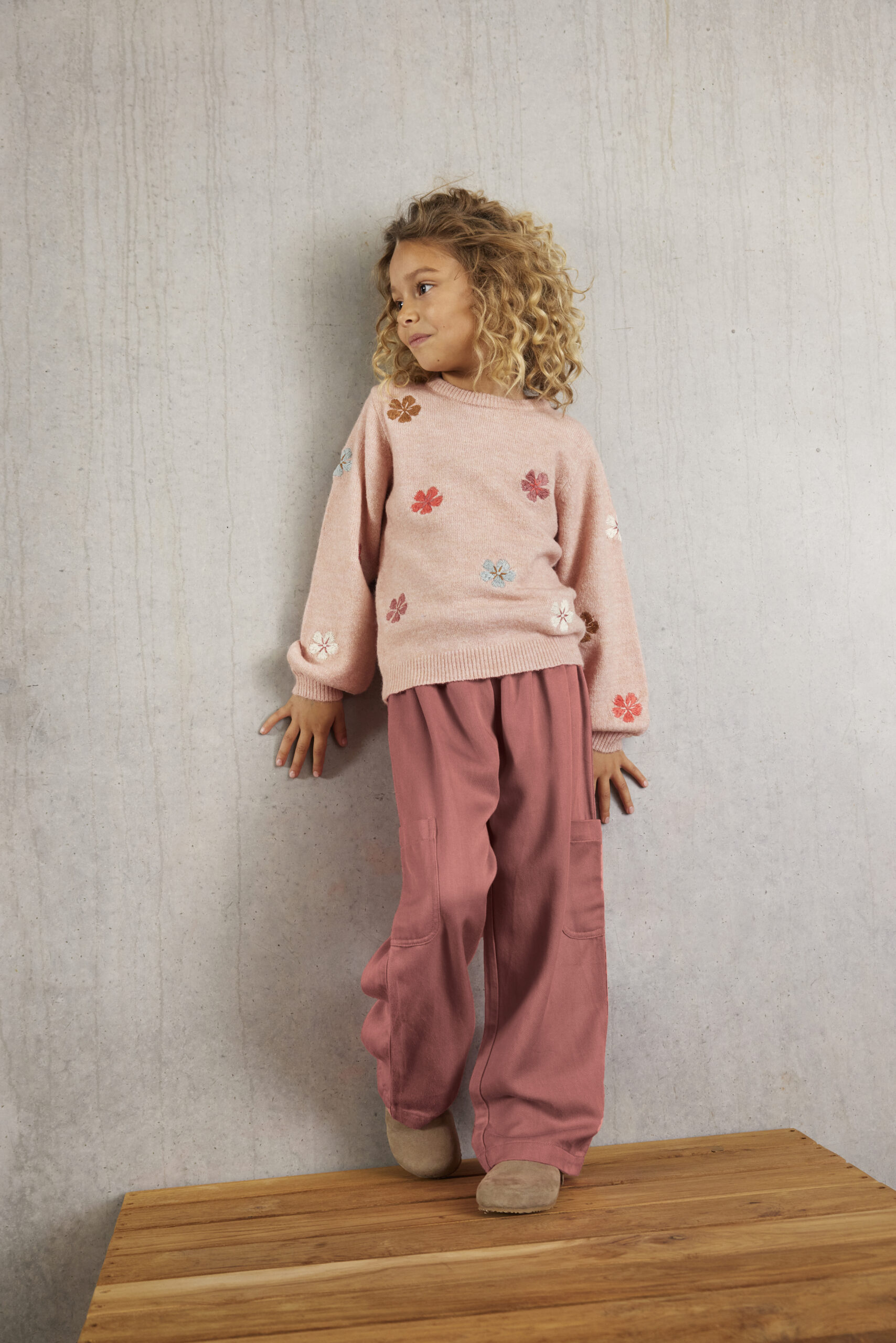 Minymo tüdrukute pehme roosa lilleline kampsun.