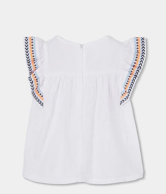 Valge tikkandiga tuunika tüdrukutele, ideaalne päikesepaistelisteks ilmadeks. Selle kerge ja värske materjal sobib ideaalselt suveks. Varrukatel on erksates värvides tikitud detailid, mis lisavad lõbusat ja elegantset hõngu. Sobib kandmiseks retuuside, lühikeste pükste või teksadega.